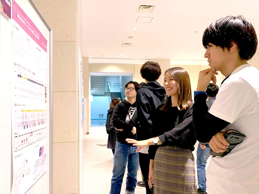 また3年生6名がポスターセッションに参加し、様々な企業、学生たちと研究手法について意見交換を交わしました。