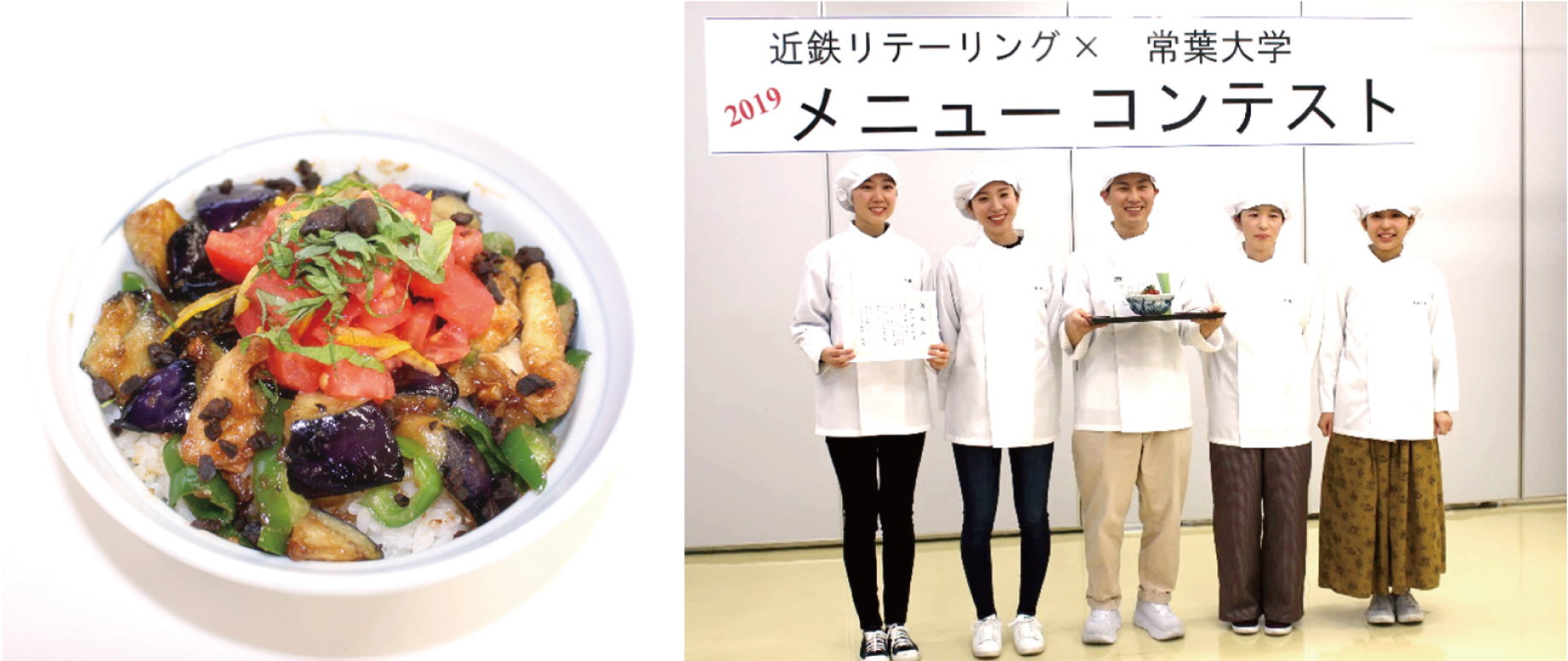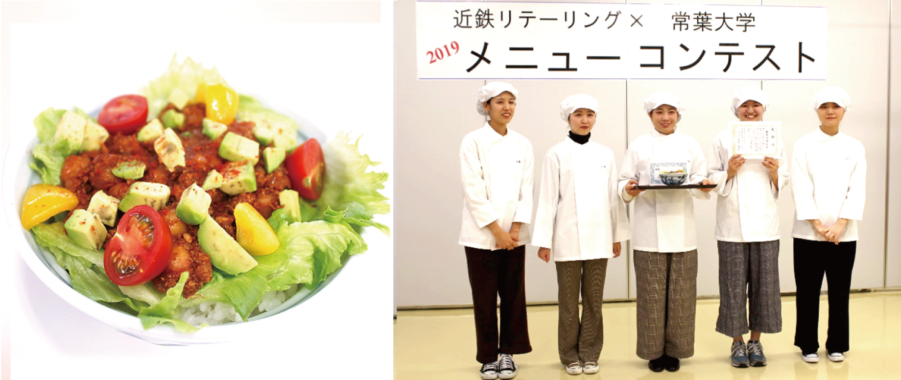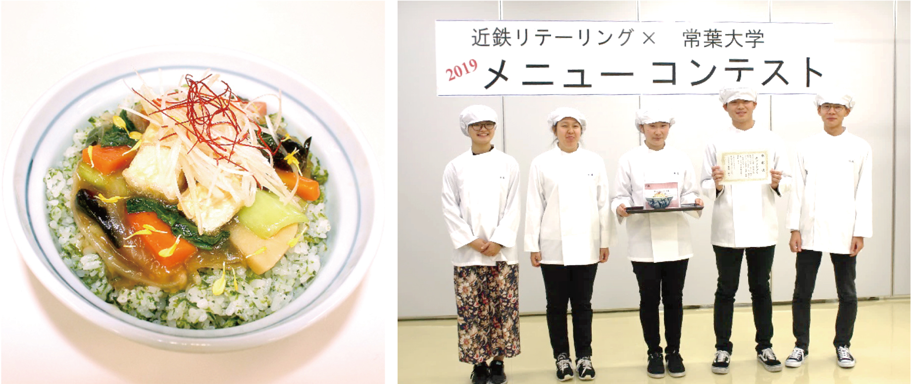 11月27日(水曜日)、浜松キャンパスにて、「浜名湖サービスエリア新メニュー創作コンテスト」が開催されました。コンテストでは、本学健康プロデュース学部健康栄養学科と、近鉄リテーリングの運営する浜名湖サービスエリアが丼物メニューの開発を行いました。今年は、サービスエリアを利用する客層や需要を意識し「ベジタリアンメニュー」のレシピを提案しました。