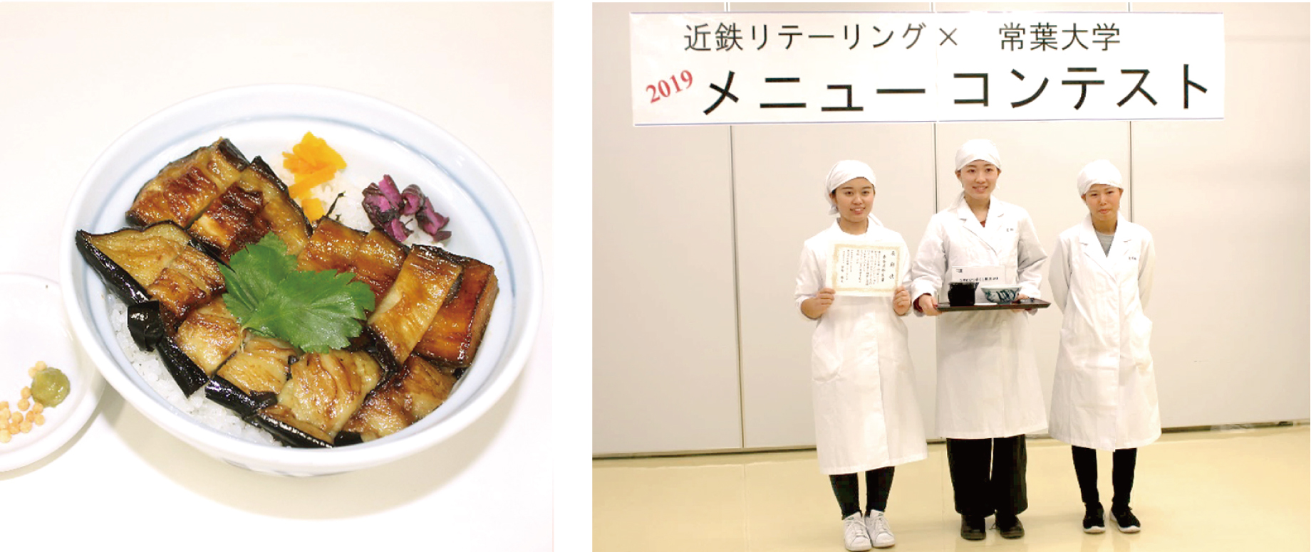 | 「なすのひつまぶし風丼ぶり」 | 大塚眞由さん、武川明日香さん、大坪美月さん、石川樹里さん、田村玲奈さん、辻明日香さん(健康栄養学科3年) |