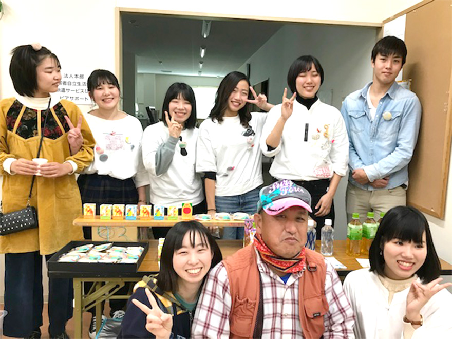 就労継続支援B型事業所として、障害のある方々が日々通う「それいゆ」の職員や利用者の方々とは、昨年のこのイベントへの参加をきっかけに交流が始まりました。今夏には、20名の保育学部3年の学生が、東京ディズニーランドへの付き添いボランティアとして同行させていただくなど、交流を重ねています。