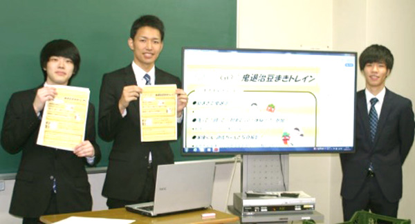 天竜浜名湖鉄道の担当者による審査の結果、「鬼退治豆まきトレイン」が採用されました。このグループは、「縁日列車」から旅行の開催時期に合わせ、お祭りの対象を「節分(鬼退治豆まき)」に絞り、当日の車内では鬼のお面を作成し、降車後に駅で豆まきを実施。その他、転車台体験ツアーや地元のゆるキャラとの写真撮影も加えました。「子ども向けによく考えられたプランになった」との講評をいただいた一方で、「郷土の昔話と結びつけることができないか」などの意見も出ました。