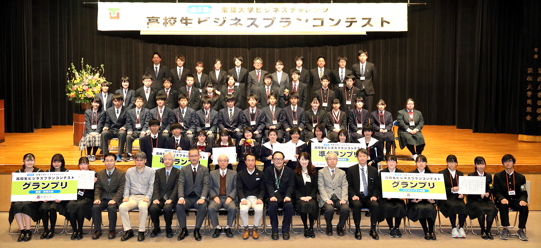 本学経営学部主催の第8回高校生ビジネスプランコンテストが2月8日(土曜日)、浜松キャンパストコハホールにおいて開催されました。当日は約170名(発表者・引率教員・応援生徒・大学教員・学生スタッフ・一般)の参加により、応募総数78作品の中から本学経営学部教員と学生実行委員会による厳正な審査を経て「ビジネスプランの部」「調査・研究の部」の2部門に各5チームが出場しました。「ビジネスプランの部」の審査は、①実現性、②市場性、③地域制、④独創性、⑤プレゼンテーション発表力、⑥夢を感じ取れたか、の6項目。「調査・研究の部」は①問題意識の明確さ、②調査・研究の充実度、③プレゼンテーション表現力、の3項目で評価が行われ、両部門ともグランプリと準グランプリが選ばれました。