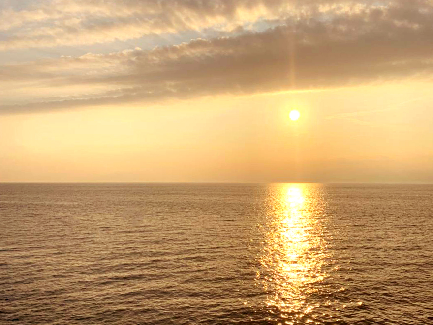 今回の2日間は、新型コロナウイルス対策のため、宿泊を避けた日帰りでの参加としました。作業時間を少しでも長く確保するためフェリーを利用しました。いつもとは一味違った参加の仕方でしたが、帰りのフェリーから見える夕日と海の絶景や、船内で販売されているたこ焼きを一日の作業が終わった後に食べる時間は格別でした。