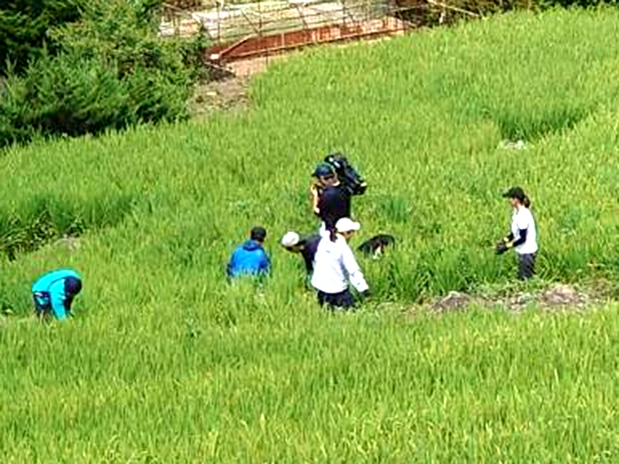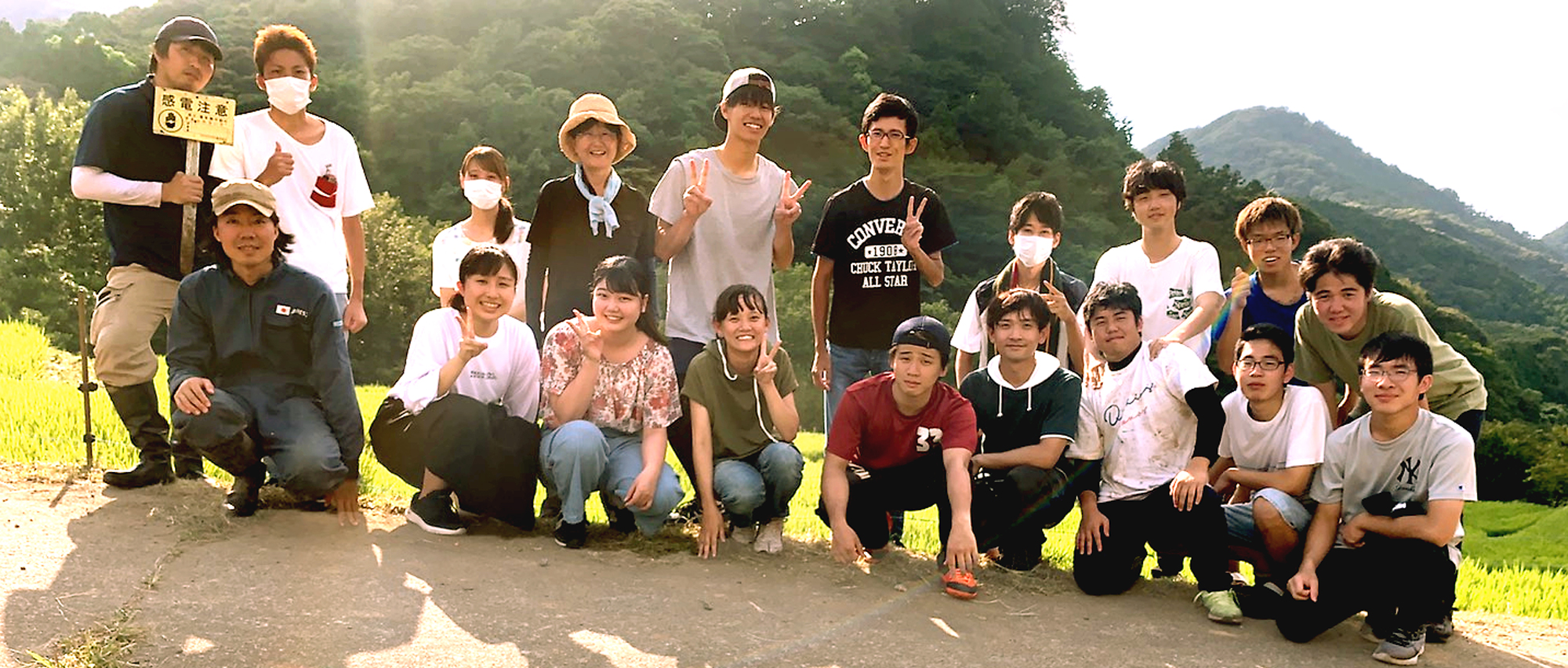 本学社会環境学部の学生が地域連携事業として静岡県賀茂郡松崎町石部にて8月21日(金曜日)、22日(土曜日)の2日間にかけて棚田の草取りに参加しました。