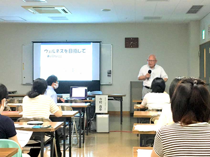 講座は9月~11月の毎週金曜日(全12回)に開催され、第1期では17名の受講者が参加しております。初回は本学の田中誠一名誉教授より「ウェルネスを目指して」と題して、運動に合わせて栄養補給・休息を摂ることの重要性を訴える特別講義を行いました。第2回では、受講者の体力測定を行いました。
