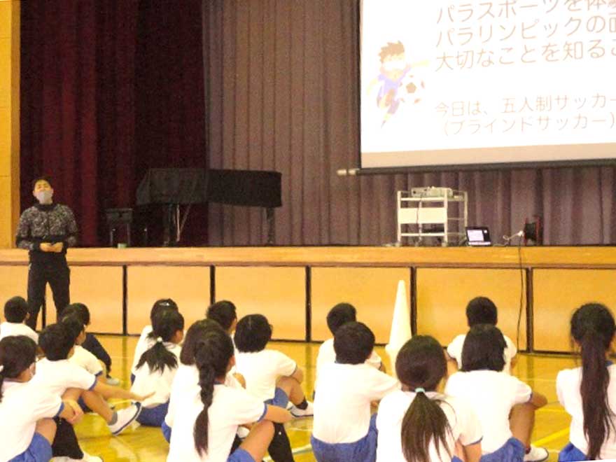 11月2日(月曜日)、浜松市立雄踏小学校で、オリパラ教育の授業として、本学健康プロデュース学部心身マネジメント学科の神力助教とゼミ生2名が4年生を対象にブラインドサッカーの体験授業を行いました。