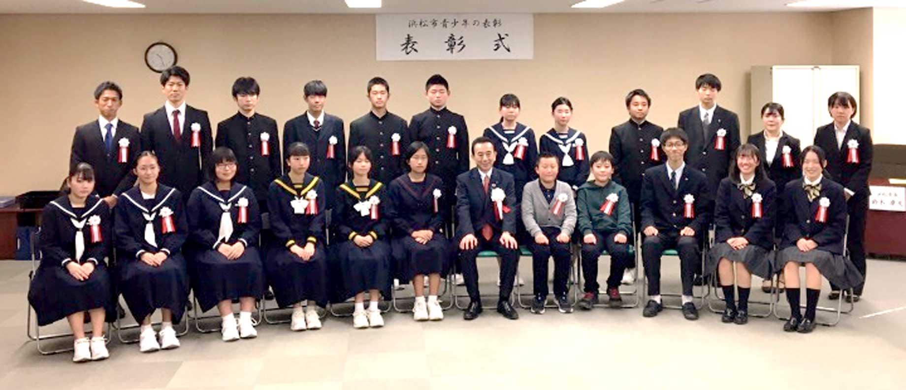 12月10日(木曜日)、浜松市役所にて表彰式が行われ、個人6名と10団体が、鈴木康友浜松市長から賞状と盾が授与されました。
