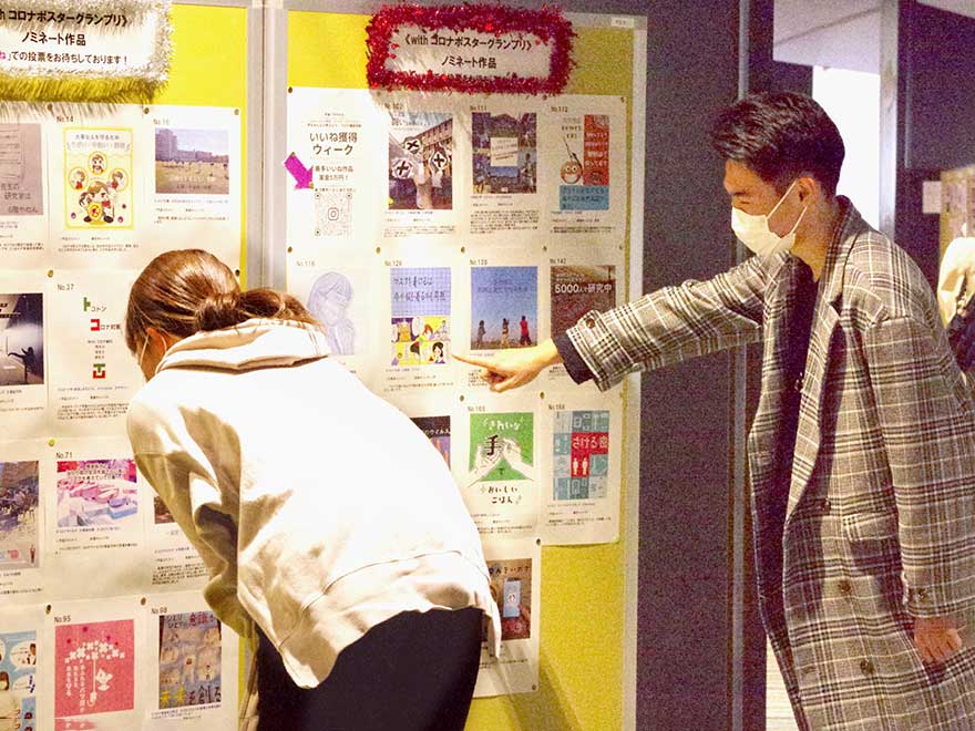 11月9日(月曜日)から教職員と学生(学友会)が企画した「withコロナポスターグランプリ」が開催されました。現在感染拡大中の新型コロナウイルスに対して、感染防止の意識を高めることを目的としています。
