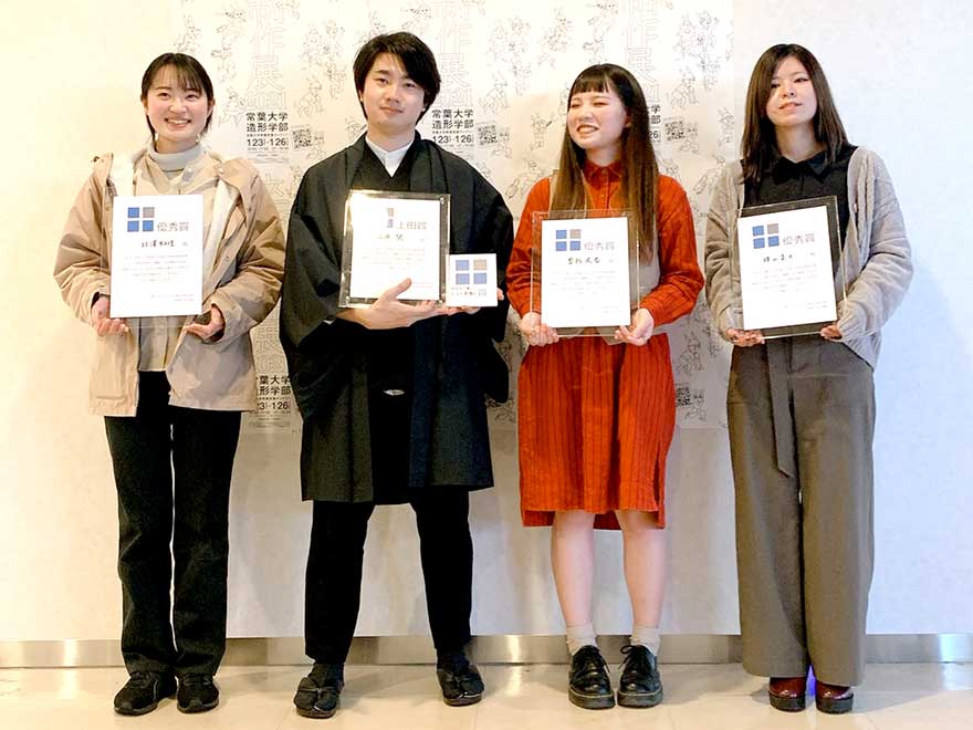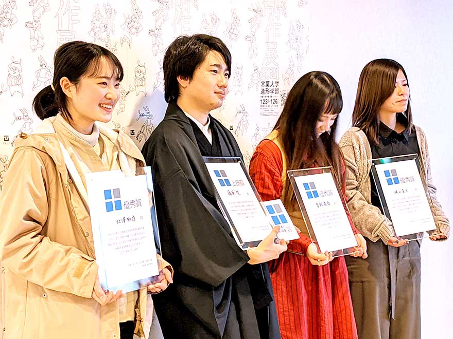 今年度は、元学部長の上田先生により設立された上田賞(優秀賞)の受賞者を決定する為、各コースよりノミネート作品を選出し、展覧会開催中にプレゼンテーションが行われ、4点の作品が優秀作品として選ばれました。また、新たな取り組みとして、学生の投票による「学生が選ぶベスト卒制賞」も実施され、1点の作品が選ばれました。