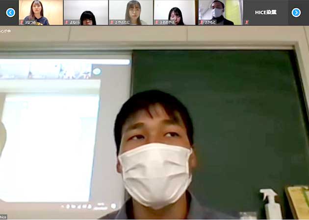 日本語の授業は、2020年10月から月に1回実施してきており、3月7日が今年度最終日でした。本活動には、経営学部生2名(1年生:吉川太陽君、夏目紗海さん)と外国語学部生6名(4年生:安藤実希さん、3年生:望月里緒菜さん、大薮春海さん、2年生:成岡奈菜花さん、米倉舞さん、薮谷真優佳さん)が参加し、毎回2名が、交代で教師役をし、その他の学生がグループワークを担当しています。