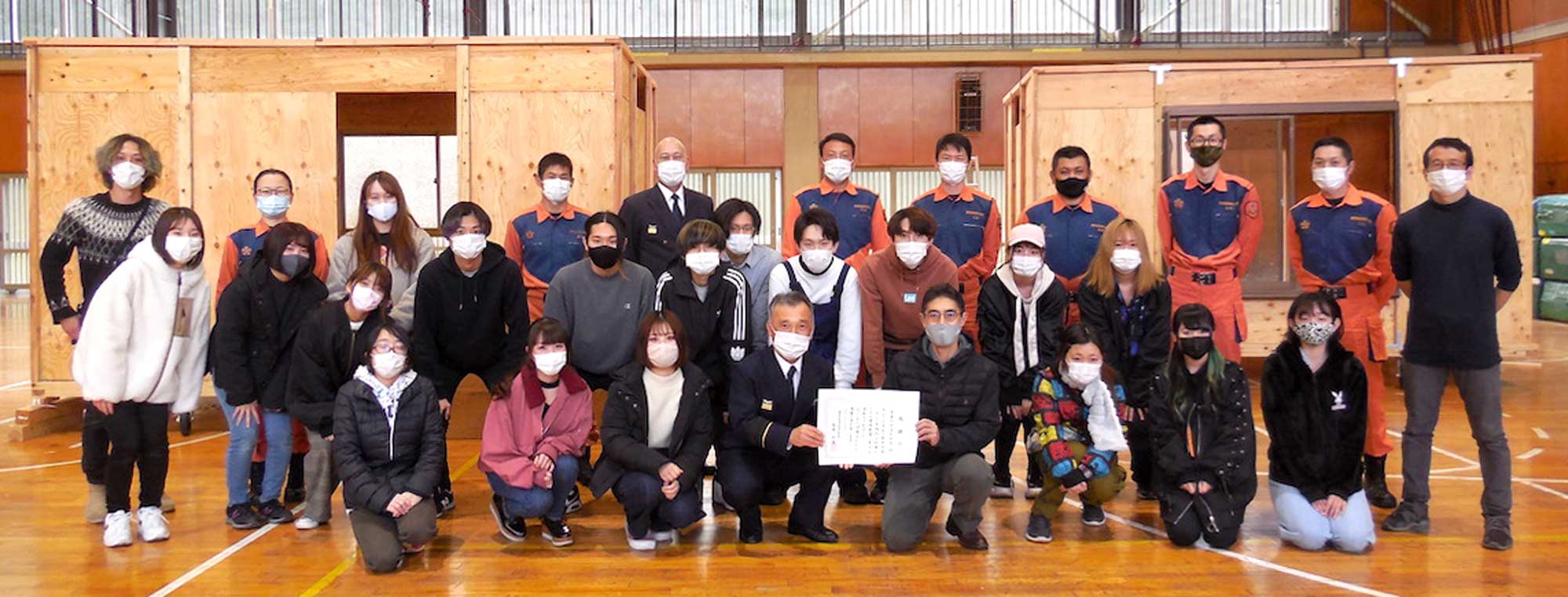 燃えてしまいましたが、造形学部の学生にとっては、実物大の家屋を製作する貴重な機会となり、消防学校からは製作に対して感謝状をいただきました。この連携は今後も続く予定です。