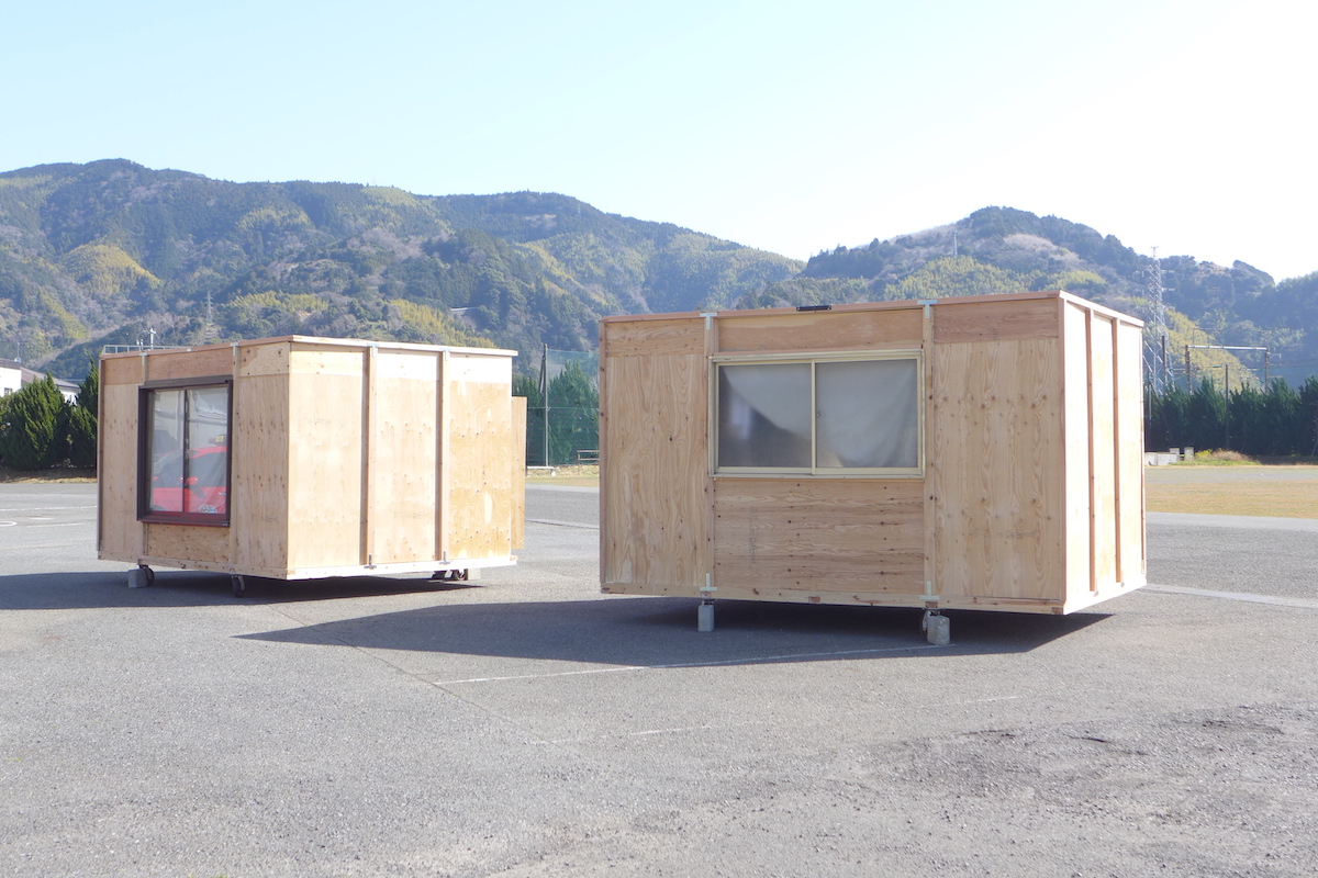 造形学部土屋ゼミと垂見ゼミでは、静岡県消防学校から依頼を受け、燃焼実験用に使われる6畳大の模擬家屋を2棟製作しました。大学で部材を切って準備し、現地で1日で組み立てました。