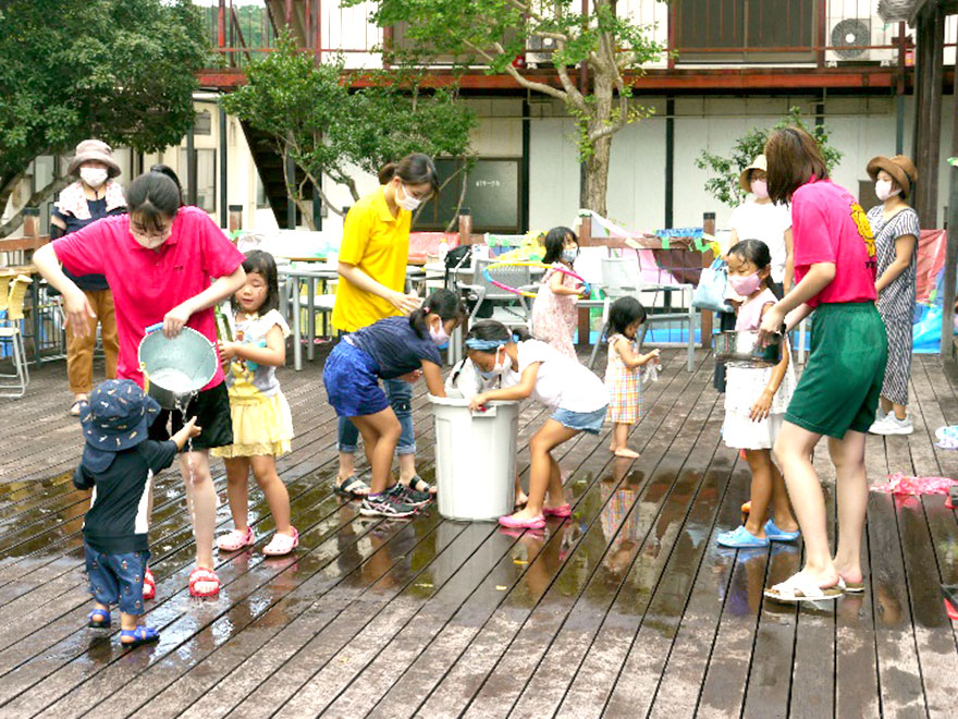 7月24日(土曜日)に、健康プロデュース学部こども健康学科の学生が主催するイベント「夏のこどもむら」を開催しました。近隣の多くの親子にご来場いただき、一緒に楽しい水遊びの時間を過ごしました。