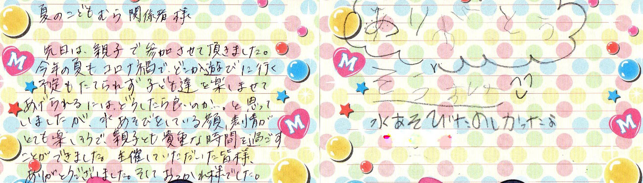 こどもむらに参加してくれた親子から感謝の手紙が届きました