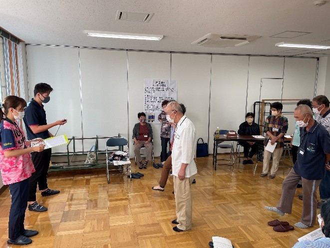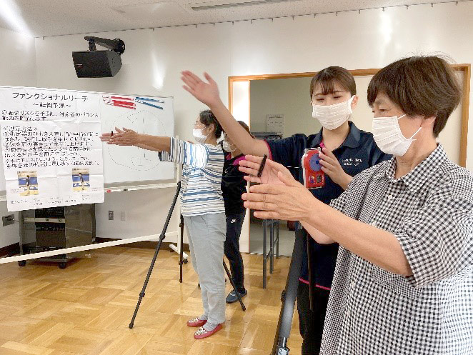 見崎さんは「授業でファンクショナルリーチテストの方法を学んだが、高齢者に実際に測定するのは初めてで、姿勢を保持してもらうことが難しかった。」と語りました。
