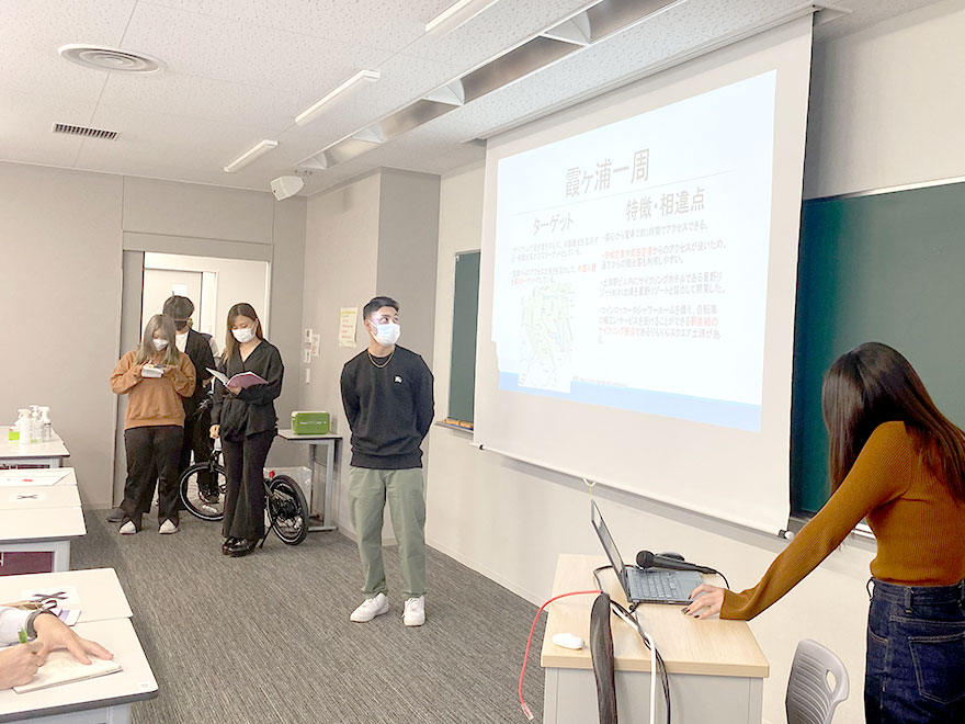 2年生は、全国のまちづくりで成功している主要なサイクリングロードの事例分析結果を報告するとともに、それぞれが現時点における施策アイデアを提案しました。