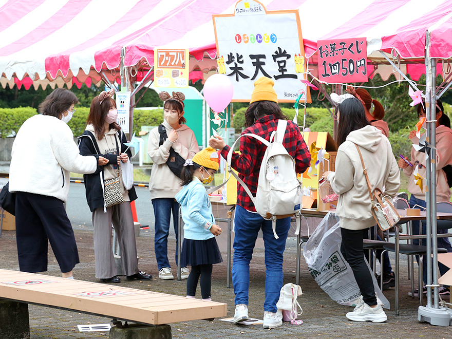 当日はこども健康学科の「こどもむら」や、子どものためのスポーツ教室などを行う「健康スポーツフェス2021!」も開かれました。また、健康鍼灸学科の美容鍼灸体験ブース、サークル団体による展示なども行われ、浜松キャンパスの日ごろの教育活動の一端を紹介しました。