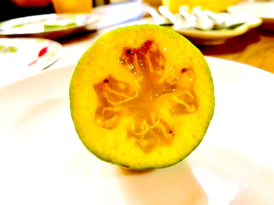 現地ではオリーブ農家の松崎康弘さんと、フェイジョア農家の丸山雄三さんのもとで収穫作業のお手伝いや商品の試食をさせていただき、当時の状況についてもお話を伺いました。フェイジョア農家の丸山さんは農園の一部が2mほどの浸水被害に遭い手放さなければならなくなり、オリーブ農家の松崎さんは河川敷のオリーブ畑で60本中半数が倒木、撤去しなければならない状態になり、復旧活動に2か月を費やしたとのことです。福島県は2度の災害を乗り越えて、なお人と人とのつながりを大切に復興に向けて歩まれている様子をうかがうことができました。