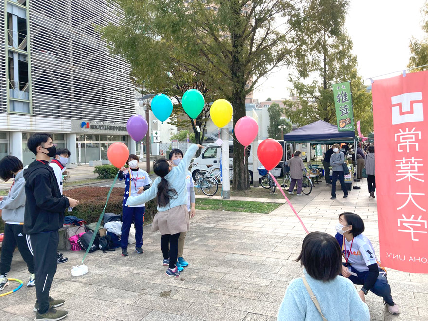 11月21日(日曜日)に浜松市アクト通りで、常葉大学、浜松学院大学、静岡文化芸術大学の学生12団体が、それぞれの専門性を活かし、ブース出展をしました。当日は、同アクト通りで市民の方によるバザーも開催されており、2,000人を超える方が足を運んでくれました。