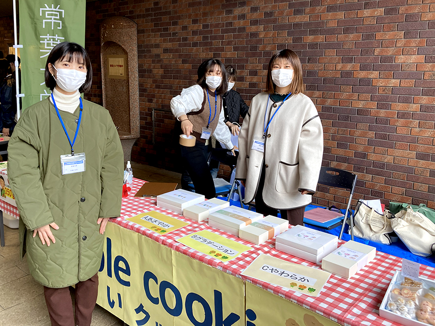 常葉大学では、クッキー開発チーム、ThunderBirds、3.11はままつ東北復光プロジェクト、プレグロの4団体が参加し、クッキーのサンプリング・アンケート調査、いわき市の農家さんの商品の販売、東日本大震災被災地支援の写真展・防災リレー、運動遊びなどが行われました。