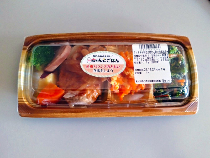 また、11月22日(月曜日)から11月26日(金曜日)にかけて、7月、8月、11月のベジスコアの測定に協力いただいた、浜松キャンパスに在籍する学生に野菜の惣菜を提供しました。この惣菜はマックスバリュ東海の管理栄養士が監修したもので、1食で1日の摂取目安の約3分の1の野菜(120g)が摂取できるように工夫されています。野菜の量について、眼で、そして、食べて確認することができました。