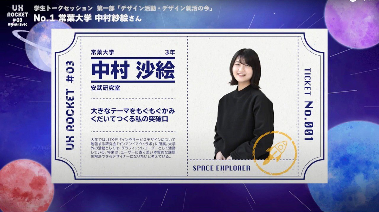 大学でデザインを学ぶ学生たちが企画し、展示や講演を通して、真剣にUXデザインを考え・語る学生が日本最大のイベント、UX ROCKET第3回「夢見る先にまっすぐ」が12月11日(土曜日)に開催され、安武研究室の学生2名が自主研究と卒業制作を発表しました。