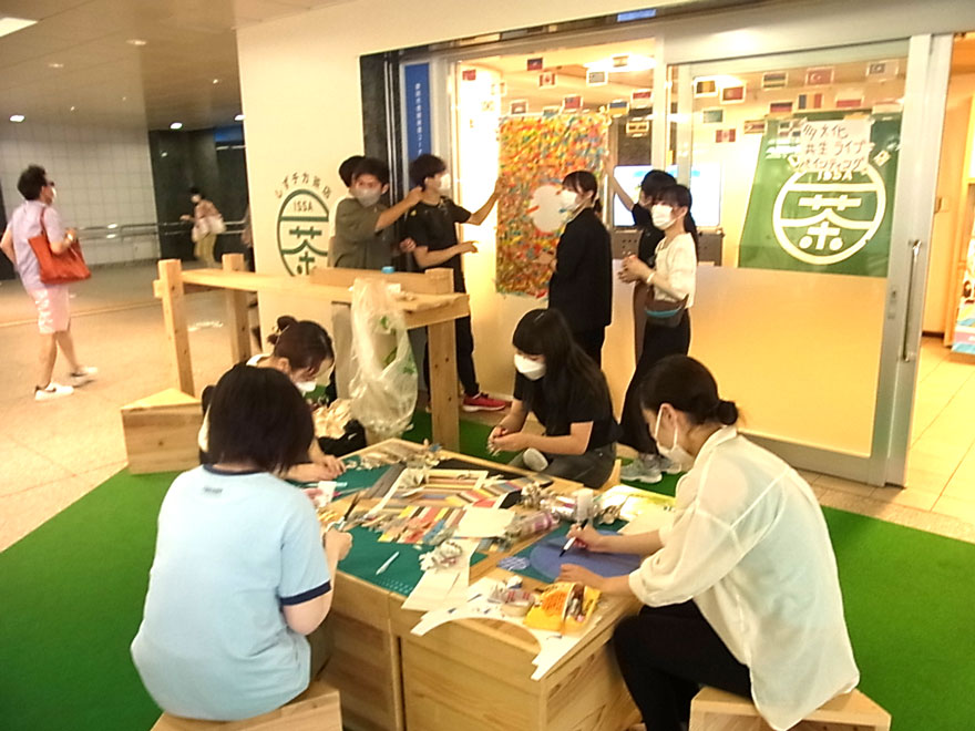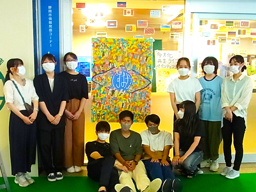 教育学部生涯学習学科の3年生10名が、7月30日(土曜日)に静岡駅の地下広場にある静岡市情報発信コーナー「シズちか」にて、多文化共生をテーマとした絵画作品の公開制作を行いました。
