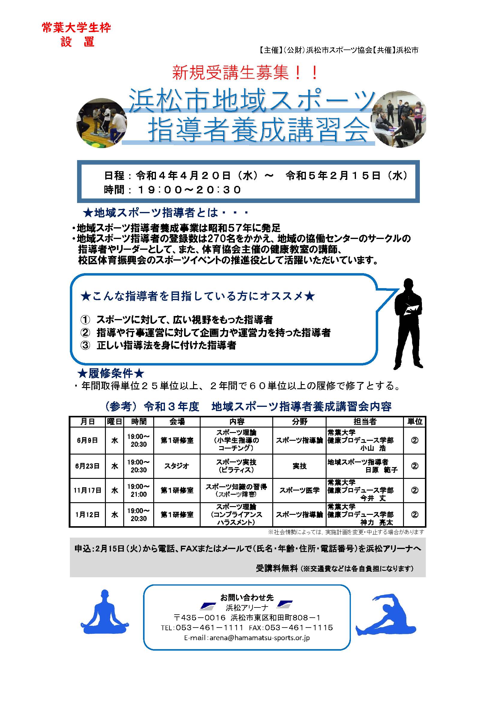 浜松市地域スポーツ指導者養成講習会 募集チラシ 【主催】(公財)浜松市スポーツ協会【共催】浜松市