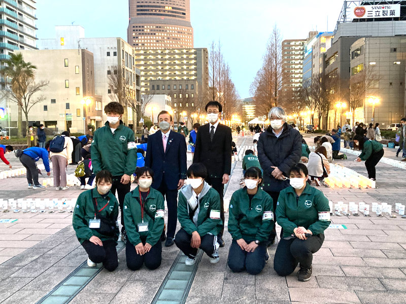 東日本大震災から11年を迎えた3月11日(金曜日)浜松キャンパスの学生が中心となり組織する、3.11はままつ東北復光プロジェクトは、他大学や企業の方など約60名のボランティアに協力をいただきながら、浜松市中区のアクト通りで「3.11復光キャンドルナイト」を開催しました。