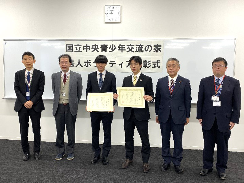 2名は国立中央青少年交流の家(静岡県御殿場市)が主催するイベントのボランティアに1年次より継続的に参加し、運営の中心として活躍した姿が評価され、この度の受賞に至りました。