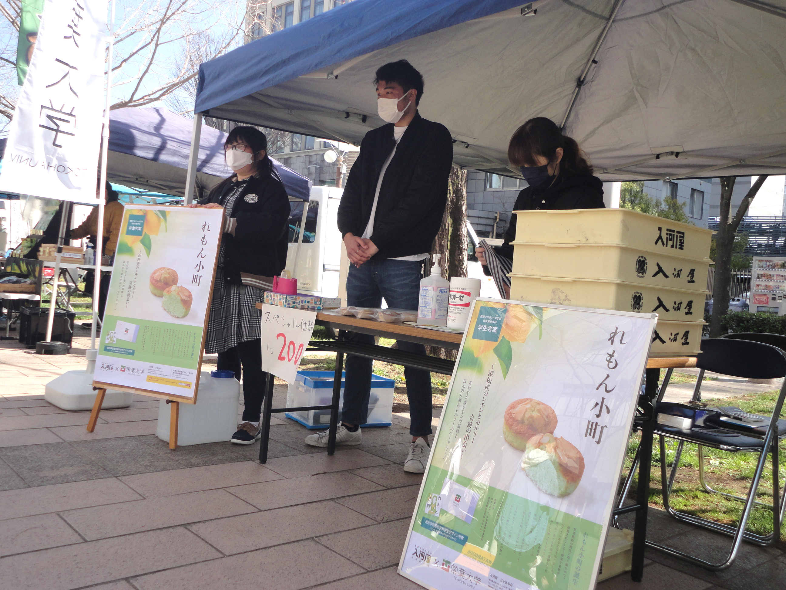 3月20日(日曜日)、健康栄養学科3年の有志5名が商品開発した「れもん小町」を、アクト通りふれあいデーにて試行販売しました。