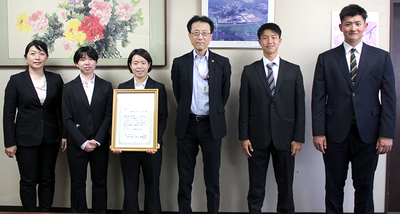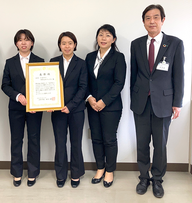 「予防・健幸都市」の実現に向けた浜松ウエルネスプロジェクトの推進に大きく寄与し、他の企業や団体等の模範となるウエルネス・ヘルスケアに関する事業又は取組を表彰する「浜松ウエルネスアワード」で、本学健康プロデュース学部心身マネジメント学科吉田ゼミの学生を中心とした団体「プレグロ」が優秀賞を受賞し、3月28日(火曜日)、表彰式が行われました。