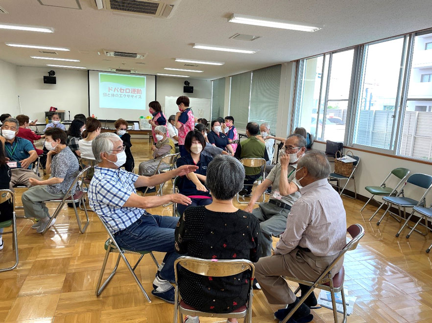 また、介護予防体操では脳リフレッシュサロン志都呂の清水孝俊氏が作詞作曲した「萌えてHAMAMATSU」という曲に井口睦仁講師と市川未来子さんが振り付けしたオリジナルの体操を取り入れました。