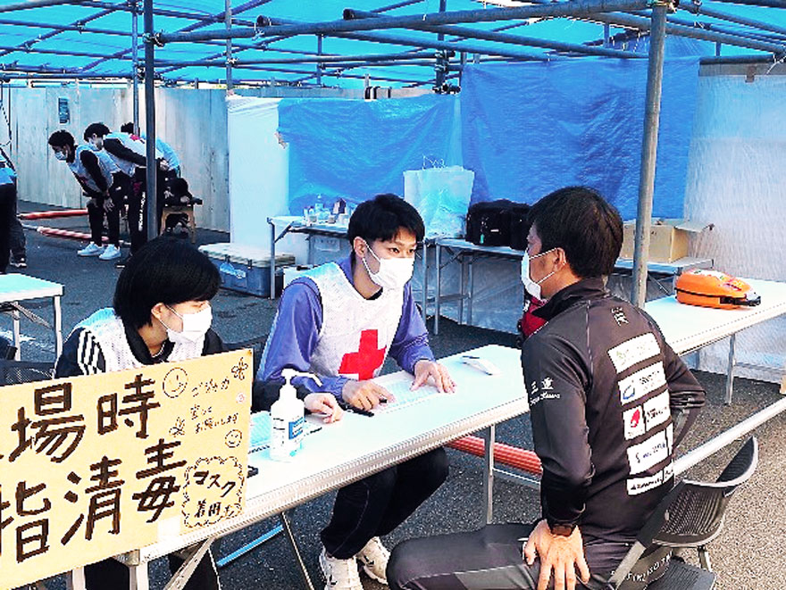 そして、この大会のメディカルサポート活動をされている静岡県理学療法士会の皆さんと栗田泰成准教授(静岡理学療法学科)の補助として、静岡水落キャンパスの学生ボランティアサークル「DELSOLE(静岡理学療法学科)」のメンバー15名が参加しました。