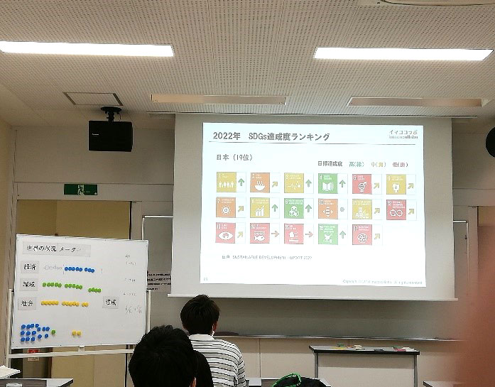 最後に講師から「実社会ではどうだろうか?2030年までに目標を達成するには、どうしたらよいか?」という課題が出されました。