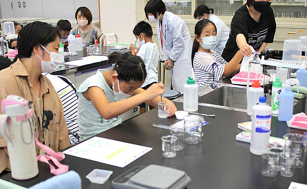 浜松キャンパスで7月16日(土曜日)、地域の子どもたちに大学を開放し、キッズオープンキャンパスを開催しました。10回目の開催となった今年度は、実験・音楽・調理・スポーツなど、浜松キャンパス各学科の学びを活かした18講座を開講。地域の子どもたちの好奇心を育て、夏休みの自由研究にも役立ててもらおうと、多くの学生が中心となり地域の子どもたちに、新たな学びの場を提供しました。