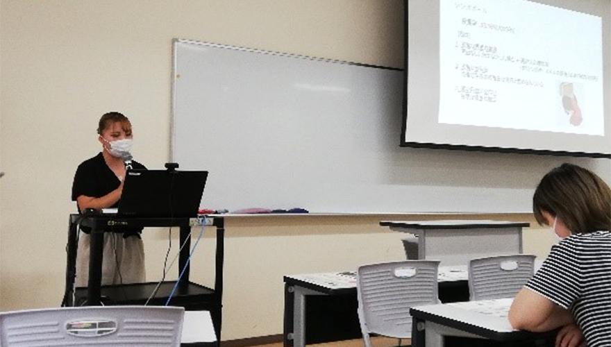 7月12日(火曜日)のグループワークの成果発表では、Aグループは「政治や選挙に関心が無い」、「政治や選挙についての知識が不足している」という若者の現状を指摘し、「メディアやSNSを利用した情報発信」や「主権者教育や講演会開催」などを提案しました。Bグループは「政治に関心があるが変化が必要と考える割合が多い」というNHKが行った調査の結果を基に「投票日を休日にする」、「被選挙権の引き下げ」などを提案しました。Cグループは若者の投票率が低いことに焦点を当て「投票の義務化」や「商業施設や大学・公共施設への新たな投票所の増設」を提案しました。Dグループは、114名に選挙に対する意識調査を行い、その結果に基づき、「投票した人に特典を与える」、「投票所をもっと身近な場所につくる」、「SNSで候補者の情報を見られるようにする」といったことを提案しました。