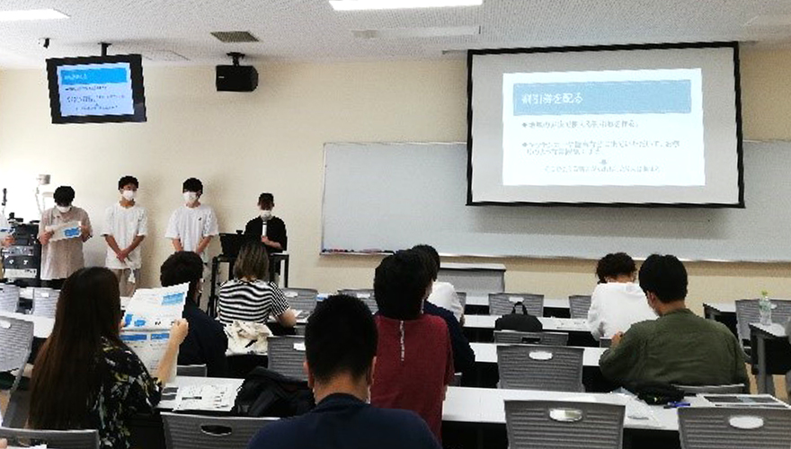 法学部1年次の教養セミナー(望月ゼミ・杉村ゼミ)では、学生がこれまでの授業で学んだことを踏まえ、静岡市選挙管理委員会事務局に「投票率向上策」の提案を行いました。
