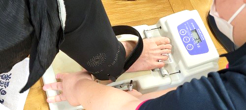 足指筋力を測定した栗山さんは「足指筋力は多くの方が初めて測定する部位なので、力のかけ方などコツを掴むのが難しい様子でした。