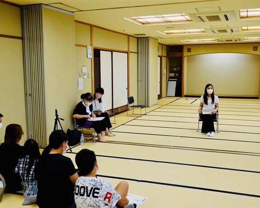2022年8月6日に焼津市の焼津公民館で開催された「外国につながる児童・生徒のための進路ガイダンス」(主催:焼津市・焼津市国際友好協会)に、外国語学部生が登壇し、参加した児童・生徒や保護者に自分たちの体験談を発表しました。
