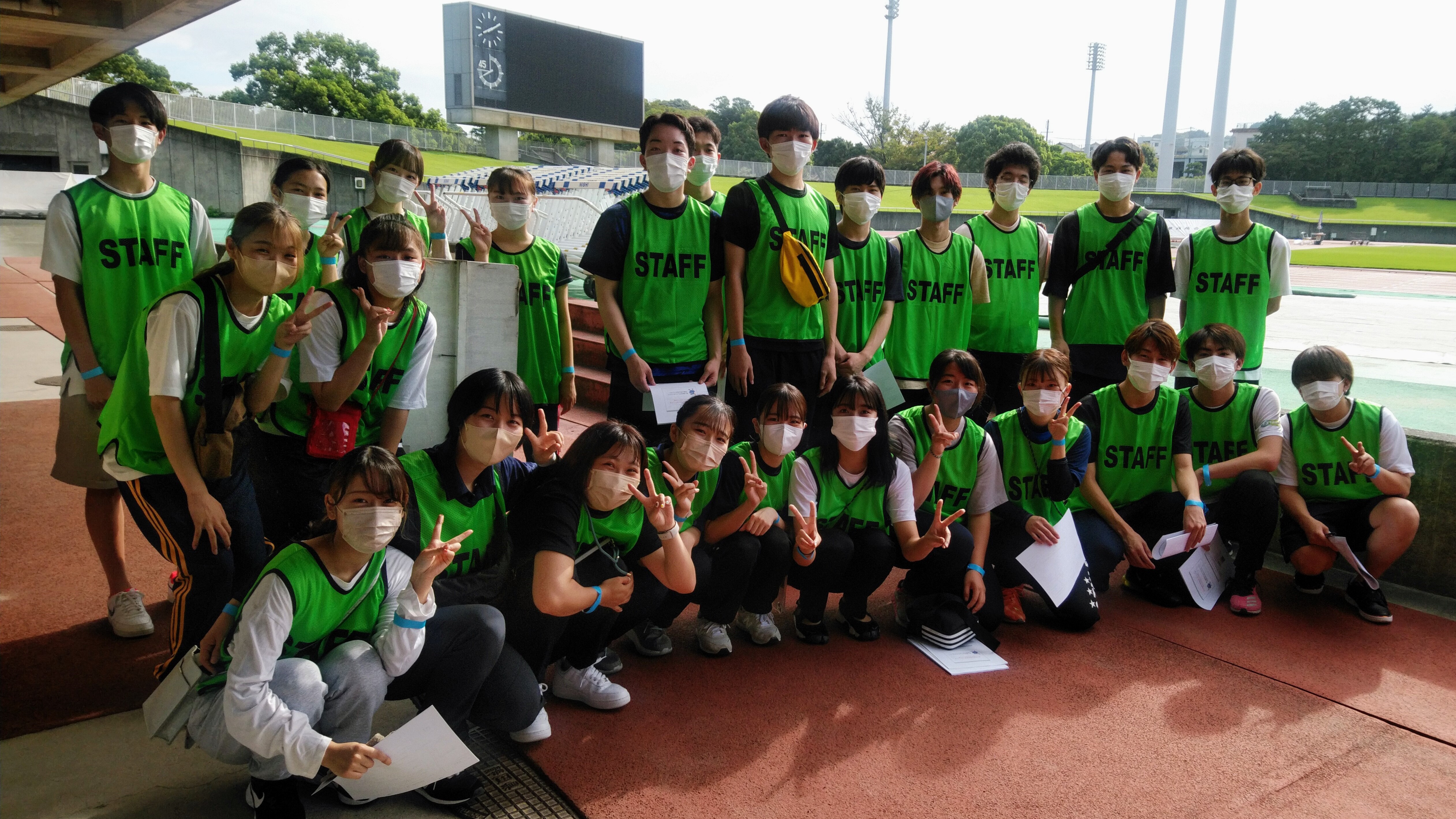令和4年9月4日(日曜日)、草薙総合運動場陸上競技場にて、健康科学部静岡理学療法学科 中村浩一准教授、看護学科 菊地美帆准教授、常葉大学障がい者スポーツ支援サークル(Supporting Para Sports)のメンバー、静岡理学療法学科学生21名、看護学科学生4名が第23回静岡県障がい者スポーツ大会の運営・支援活動を行いました。