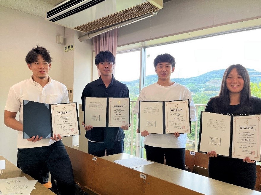 2022年度日本トレーニング指導者認定試験に、健康プロデュース学部心身マネジメント学科の大河孝稀さん、島袋航汰さん、杉山実紗希さん、谷川大地さん(心身マネジメント学科4年)が合格しました。