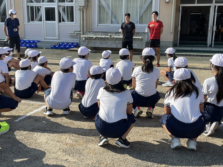 本学陸上競技部は、近隣にある浜松市立都田小学校からの依頼を受け、9月27日(火曜日)と29日(木曜日)に陸上部活の指導を行いました。都田小学校では、10月22日(土曜日)に予定している浜松市陸上大会に出場することを目指して、8種目の陸上競技を小学4・5・6年生が練習をしています。27日の練習には陸上競技部員2名が参加をし、小学生の見本となりフォームの指導や走り方のアドバイス、練習メニューの提案を行いました。練習終了後に、児童からは「少し速なった気がする」といった声も聞かれました。指導に参加した山崎優太朗さん(心身マネジメント学科3年)は「子どもたちと接する機会が少ない中で、良い機会となった。小学生への指導は難しかったが、やりがいを感じる発見があり、今後もこのような活動を行っていきたい」と話しました。児童に指導することで、学生自身の学びにも繋がる貴重な経験となりました。