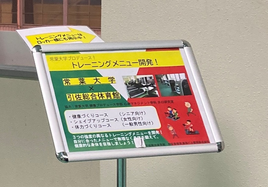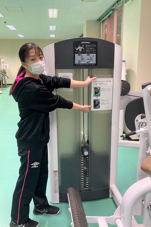 健康プロデュース学部心身マネジメント学科井口ゼミに所属する福田恭子さん、山口えりかさん(ともに3年)は、日頃の学びを生かし、大学近隣にある引佐総合体育館のトレーニングジムで、利用者の用途に合わせた3つのトレーニングメニューを考案しました。