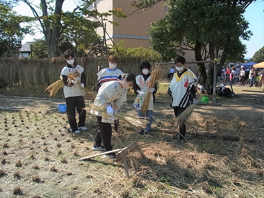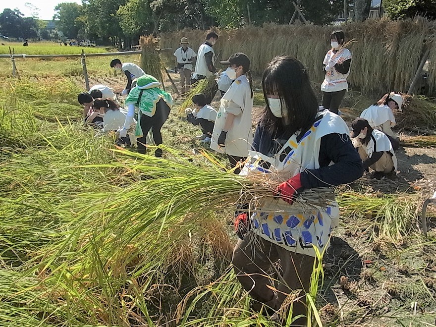 これは、登呂博物館が行っている水田サポーターの活動に参加したものです。農家や学芸員の指導のもと、稲刈り・はぜ掛け・藁すぐり