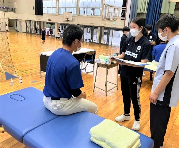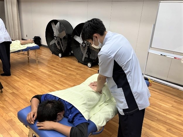 浜松湖北高校の卒業生、夏目大輝さん(健康鍼灸学科1年)は、「後輩のケア活動ができて嬉しかった。後輩に喜んでもらって、改めて鍼灸師のやりがいを実感することができた」と感想を語り、将来はスポーツ選手をはじめ、いろいろな方の役に立てる鍼灸師になりたいと決意を新たにしていました。