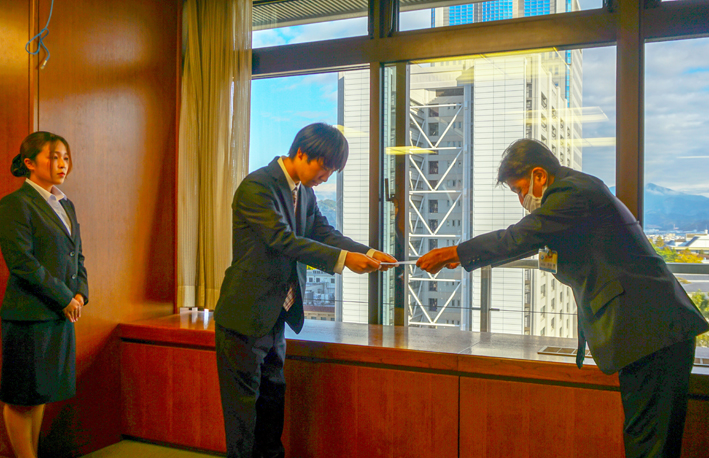 11月15日(火曜日)、本学経営学部の山田・酒井ゼミの学生が静岡市葵区役所を訪れ、台風15号復興支援活動の報告を行いました。