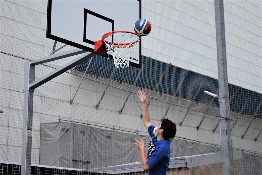 バスケットゴールの設置を記念して、学友会の学生がお披露目会イベントを行い、大いに盛り上げてくれました。大学生の有志はもちろんのこと、高校生や教職員も参加し白熱の戦いを繰り広げました。イベントを企画した学友会の学生(静岡理学療法学科2年、望月大誠さん)は「水落キャンパスに身体を動かせる設備ができてとても嬉しいです。今回のイベントにおいて、普段は交流の少ない常葉高校の生徒や教職員の方と一緒にイベントができて楽しかったです。