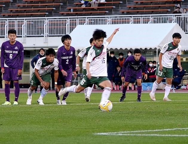 第71回全日本大学サッカー選手権大会の1回戦が12月8日(木曜日)、神奈川県の三ツ沢公園陸上競技場で行われ、東海第2代表として出場した本学サッカー部が関西大学(関西第4代表)と対戦し、PK戦を制して初戦を突破しました。