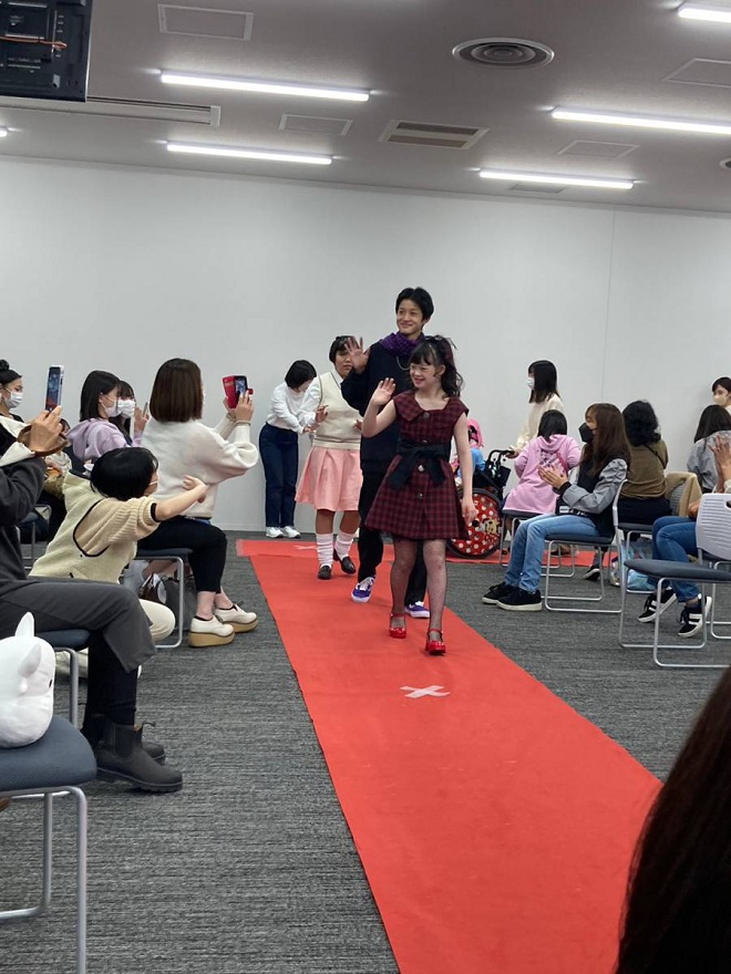 その後、11月26日(土曜日)に本企画の集大成となるファッションショーを行いました。子どもたちはヘアメイクを行うと色々な人に自分の姿を見せに行ったり、いつもと違う自分をじっと観察して、本番前から気分を高める様子が見られました。ウォーキングでは緊張した様子もありましたが、ウォーキングレッスンで学んだ笑顔やポージング、オリジナルのポージングと思い思いの姿を見せてくれました。